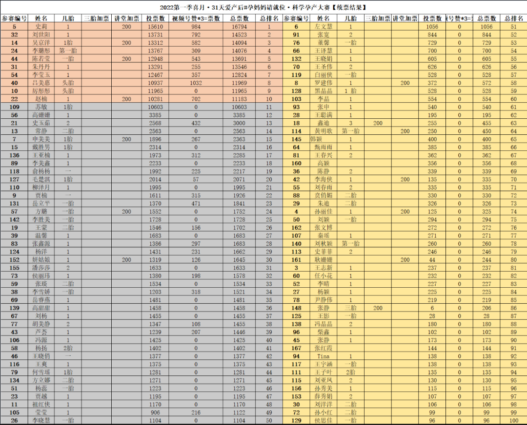#孕媽媽請(qǐng)就位·科學(xué)孕產(chǎn)大賽前100名名單