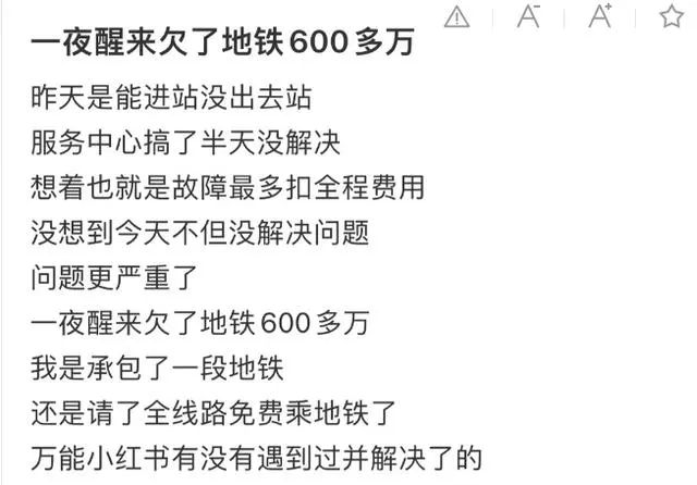 一夜暴“負”,網(wǎng)友一覺醒來欠地鐵600多萬,發(fā)帖求助上熱搜